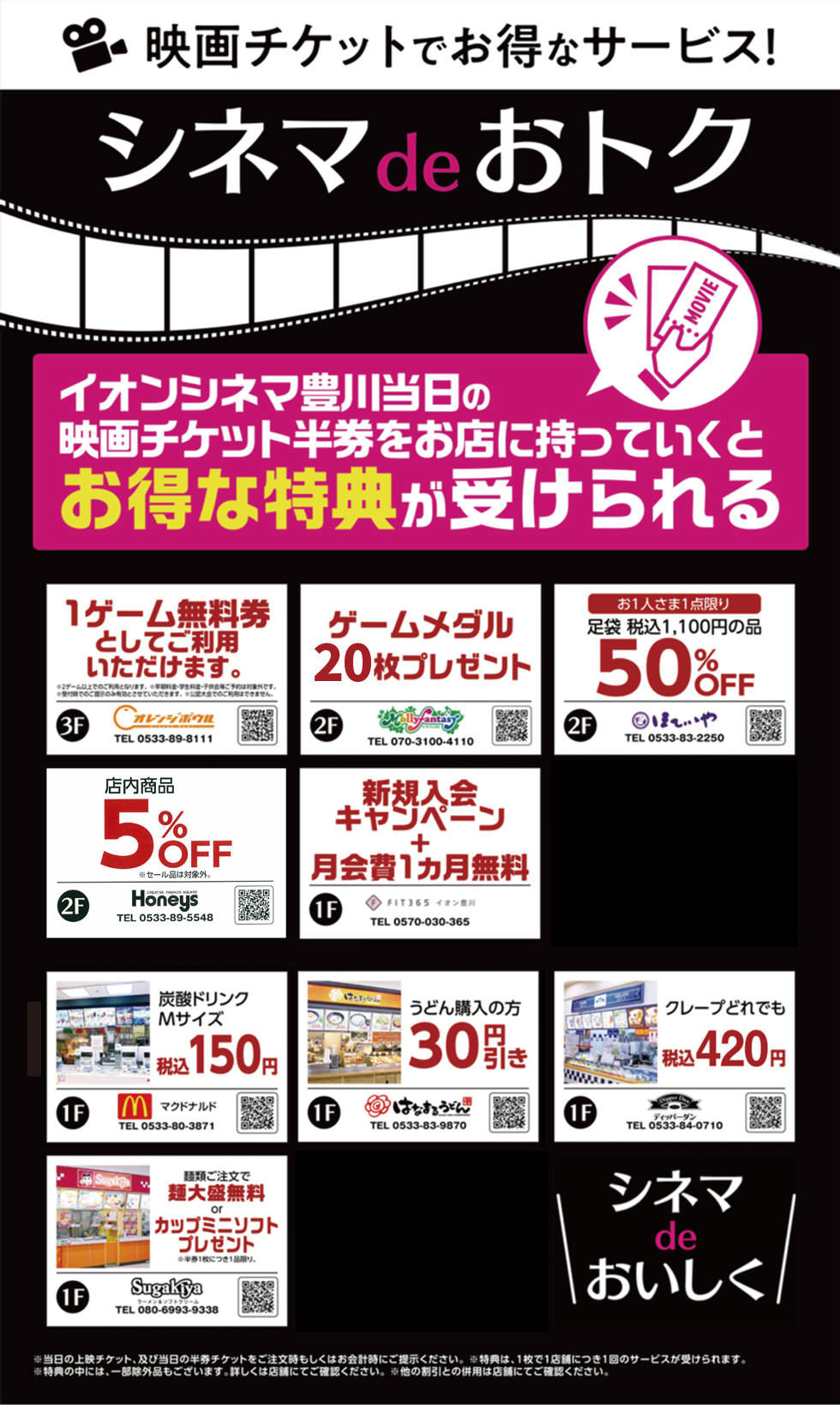 | 公式サイト | https://cinema.aeoncinema.com/wm/toyokawa/ 上映スケジュールや作品紹介、前売りチケット情報は公式サイトをご覧ください。 |