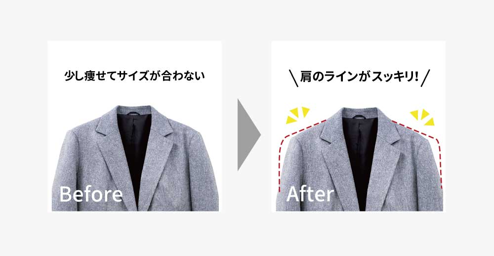 その他、肩パッドの調整(取り付け・取り外し)などもお気軽にご相談ください。