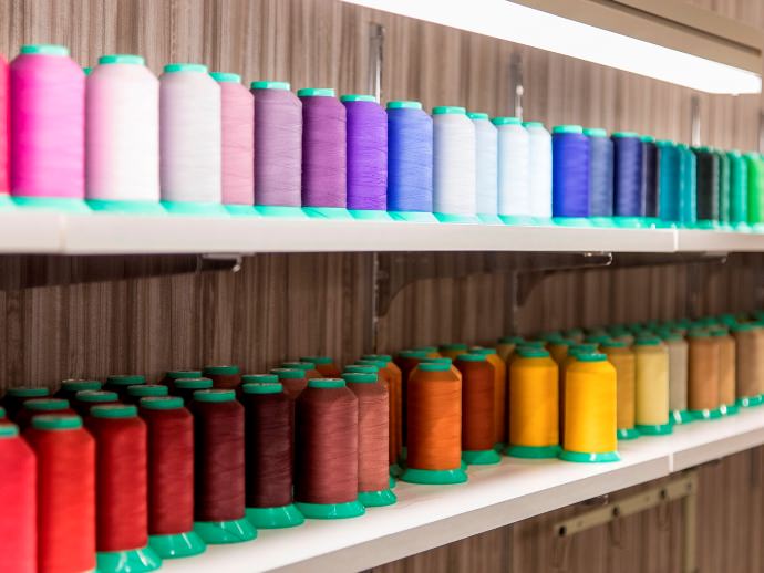 お店には沢山の糸があり、裾上げの際は一番近い色の糸でお直しいたします。