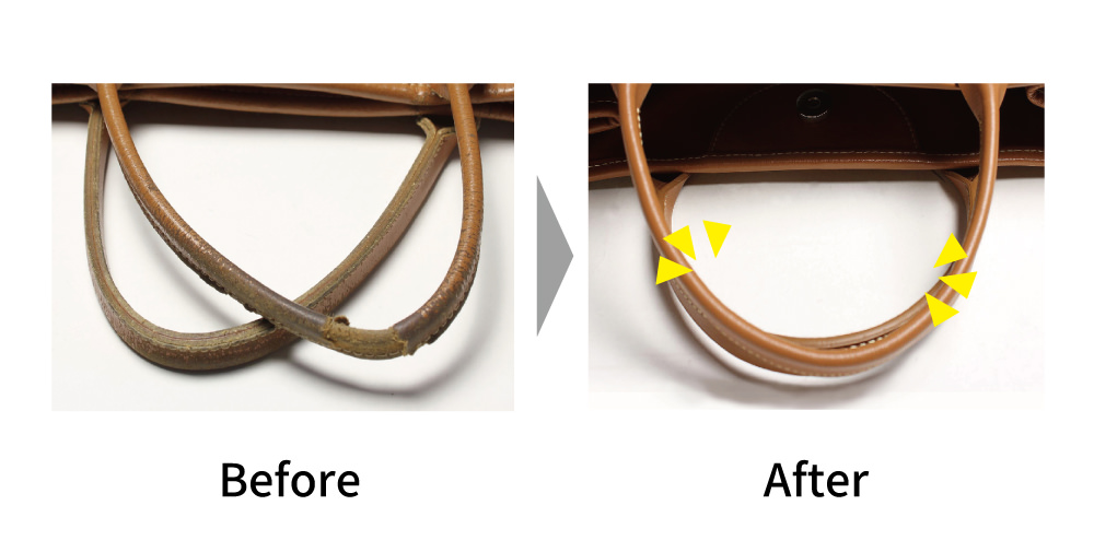 パソコンや書類などの重い荷物を入れたり、中に入っている芯の劣化や革の乾燥などで持ち手部分が切れてしまうことも…