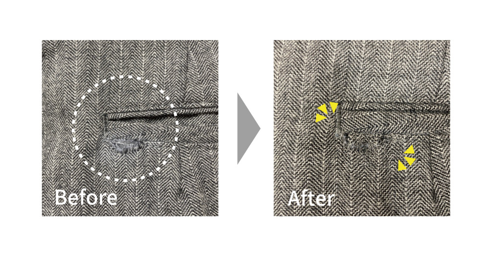 パンツの後ろポケット周りの生地が破れてお困りではありませんか?