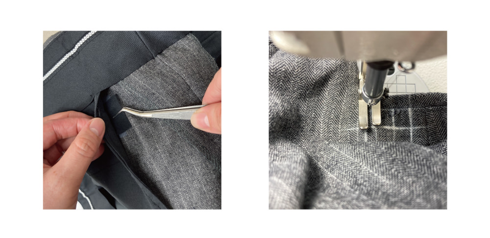 ※ご購入時についていたお洋服と同じ生地(共布)をお持ちください。お持ちでない場合は、ズボンや上着の裾、ポケットの中など見えないところから布を切り取ります。